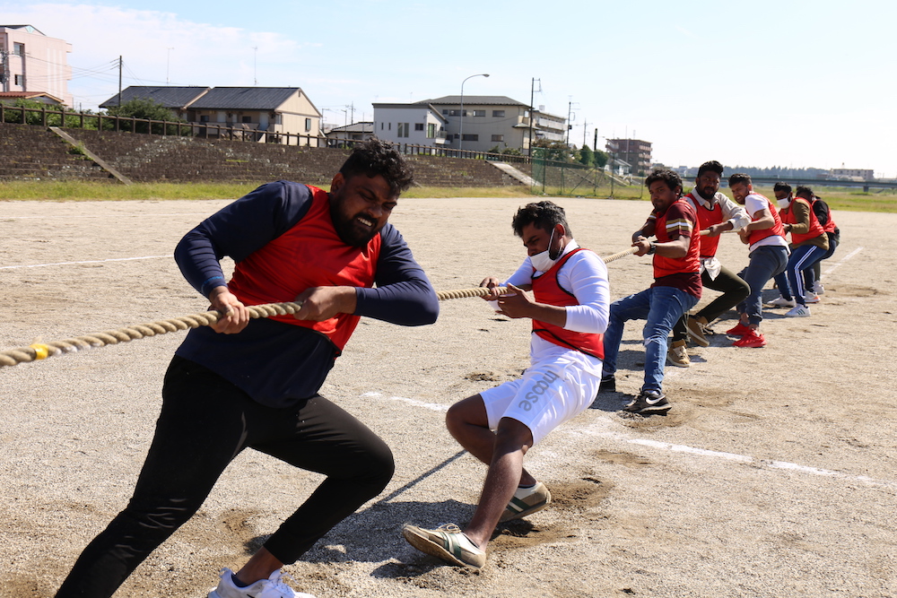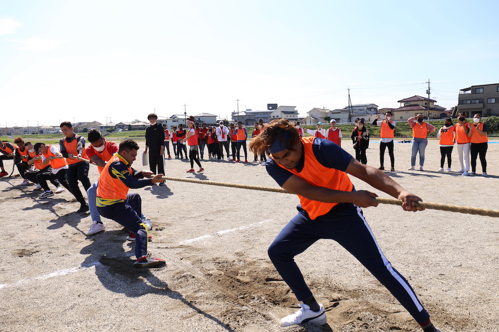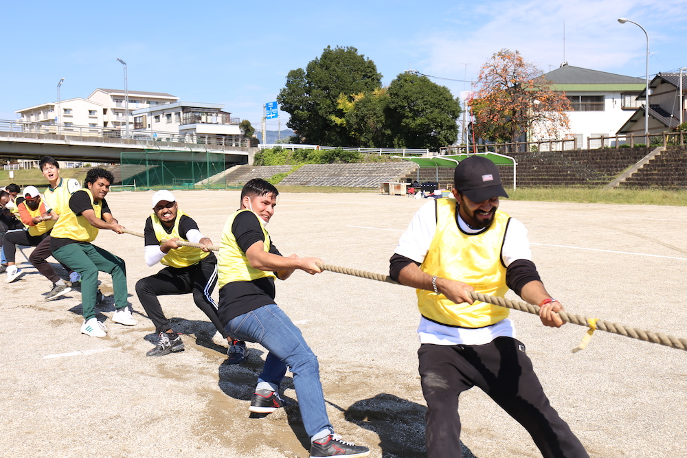 綱引きは8人づつのチームが全員力を合わせてつなを引きました!みんな力一杯縄を引き闘いました!