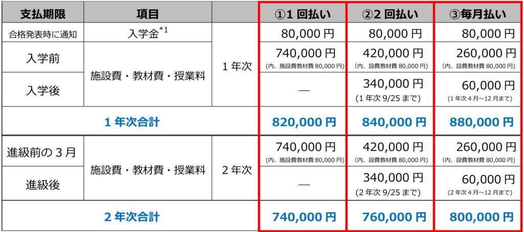 *1 入学金は、入学辞退または入学取消となった場合、返還いたしません。