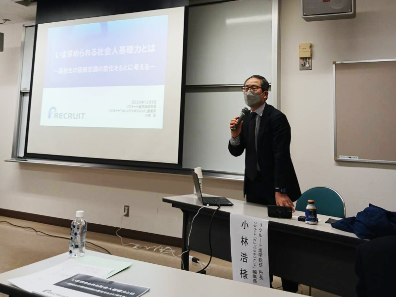 講師には、リクルート進学総研所長であり、リクルート「カレッジマネジメント」編集長を務める小林浩先生をお迎えし、貴重な講演が行われました。小林先生はその専門性において高い信頼を寄せられている方であり、その豊富な経験と知識に参加者の皆さんは、熱心に耳を傾けていました。