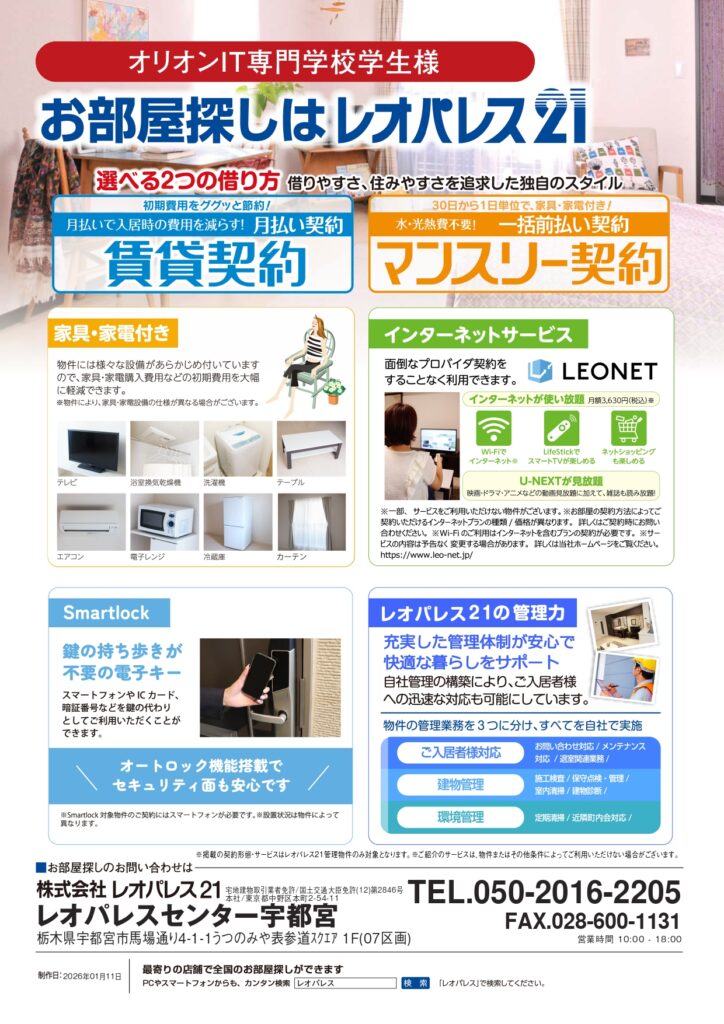 アパートの会社の情報をアップします。2026年4月入学の方でこれからアパートを探す方は参考にしてください。